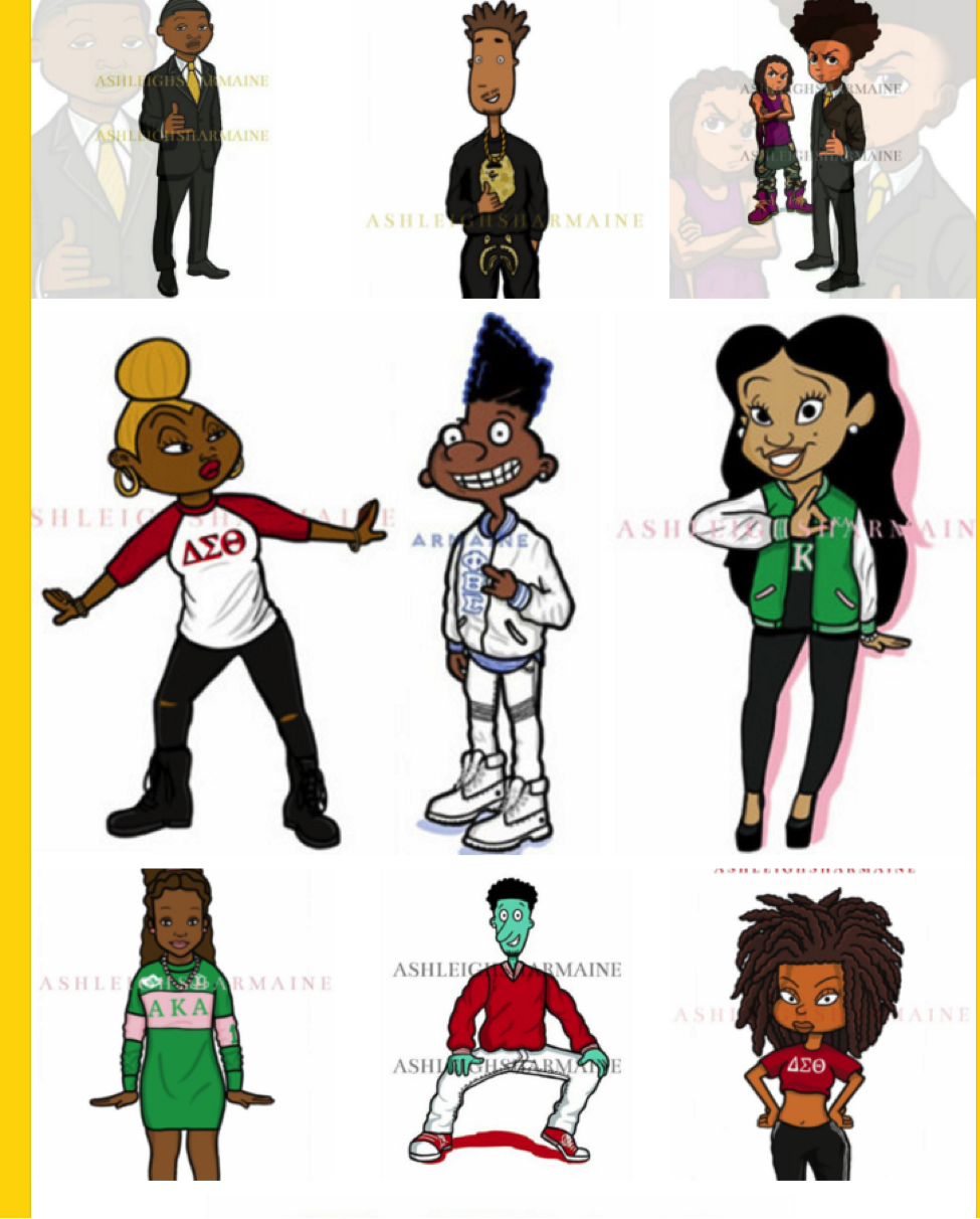 What if your favorite cartoon characters from your childhood grew up with you? What kind of jobs would they have? What if they attended college? What if they became members of Black Greek Lettered Organizations? What if they played characters in your favorite 90’s era films?
