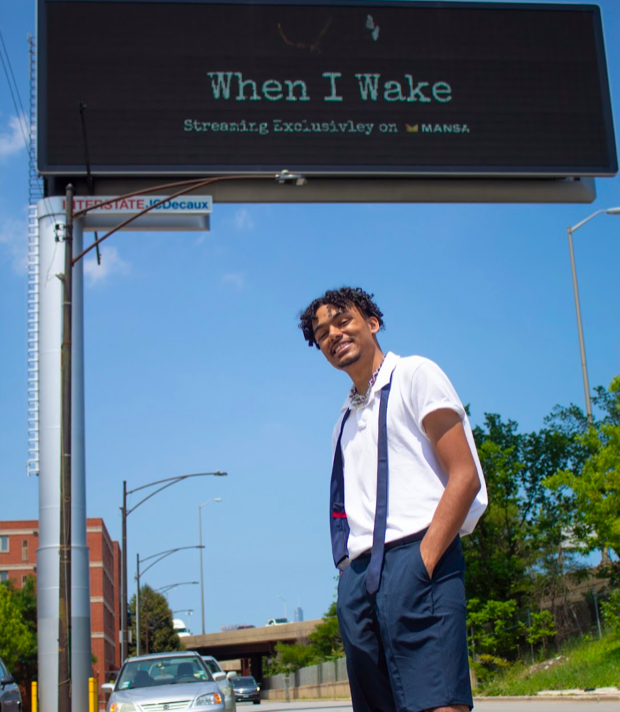 Writer & Director Julian Thedford stands under a Chicago billboard for his project When I Wake. “Seeing a billboard with my work in my hometown felt surreal. Knowing I created the film for Chicago, it was a very full circle moment.” – Julian Thedford