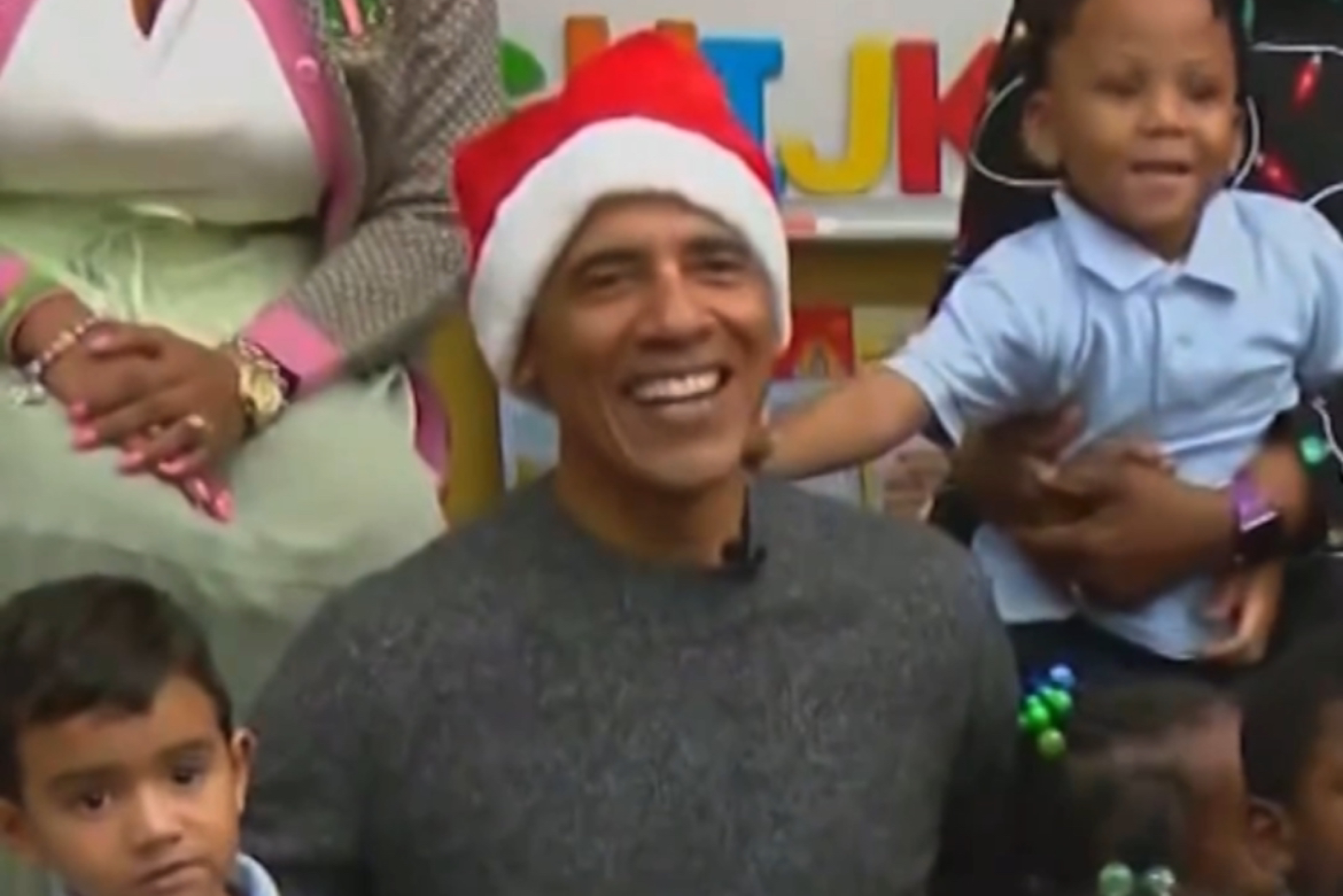 Former President Barack Obama pulled up to a Chicago school decked out in a Santa hat and bearing. He spreaded a little holiday cheer to the pre-K class ahead of the winter break.