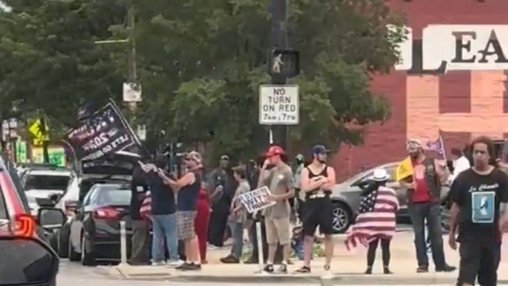 A small group of Trump supporters spotted on the Westside of Chicago on the corner of Central and Madison waving flags.