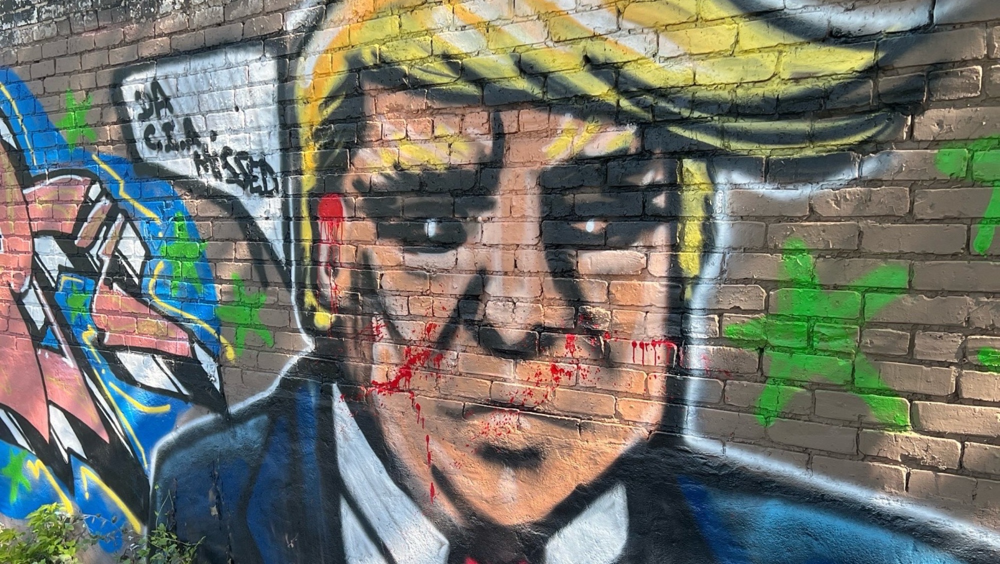 The painting is a reflection the recent assassination attempt of the 45th President over the weekend in Pennsylvania. The mural is located on 70th and Halsted.