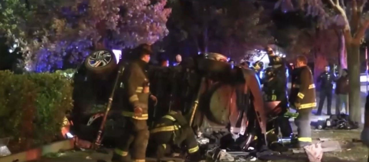 TWO KILLED IN CAR CRASH OUTSIDE CHICAGO POLICE HEADQUARTERS