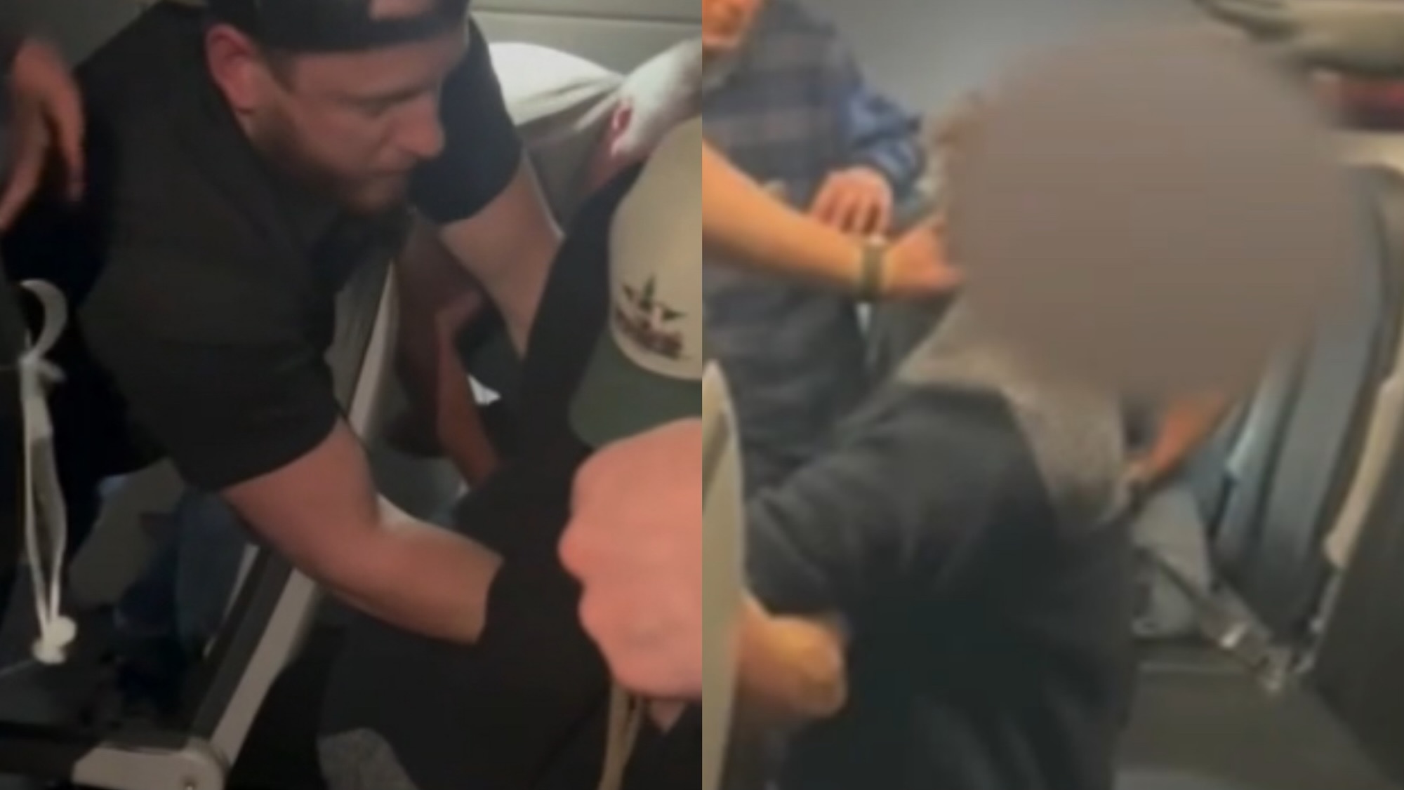 That’s when in the video you can see other passengers trying to calm him and and also tie him up.