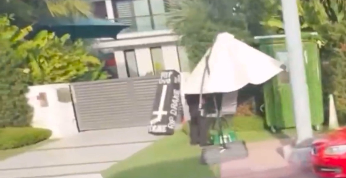 According to TMZ, on February 15th two people rolled up in a truck to a security guard, claiming to be from a delivery company. After getting access to continue on to the property and dropped the black coffin outside his gate. Written across the coffin was “RIP OVO” and “RIP Drake” in white letters, along with an upside-down cross.