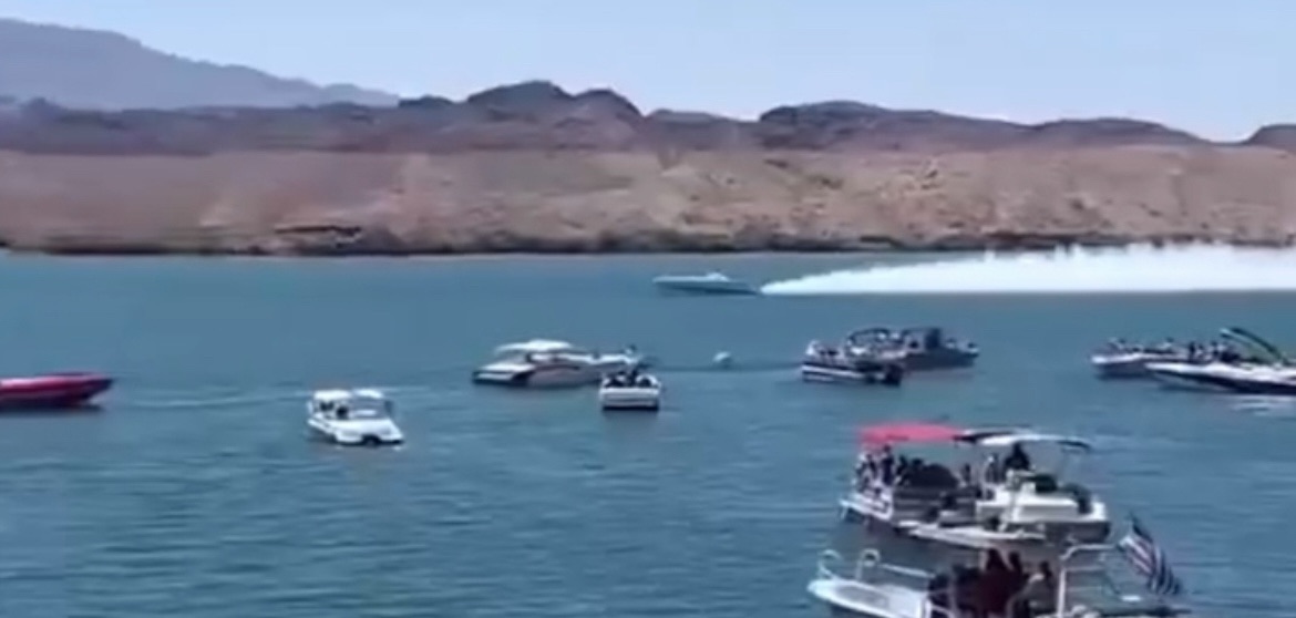 Footage showed high-powered speedboat races across the lake before suddenly taking a horrifying, unexpected turn, launching into the air, flipping several times, and crashing violently into the water with a massive splash.