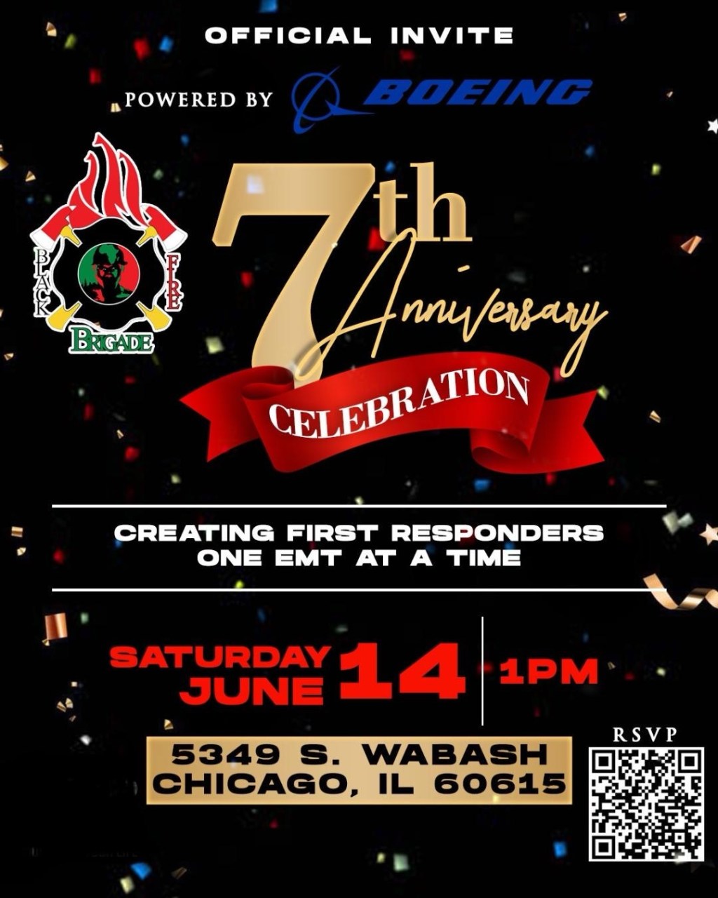 Additionally, the Black Fire Brigade will celebrate its seventh anniversary of developing first responders, one EMT at a time, on Saturday, June 14, 2025, from 1 p.m. to 5 p.m. at the Black Fire Brigade Training Center (Firehouse) at 5349 S. Wabash.