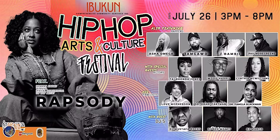 Chicago, IL – June 2025 — This summer, Chicago will experience a powerful celebration of culture, creativity, and community healing as the IBUKUN Hip Hop Art & Culture Fest takes over the Zhou B Art Center (1029 W. 35th Street, Chicago) on Saturday, July 26, 2025 from 3:00pm – 8:00pm. The event is hosted by Ibukun Comprehensive Community Services and is more than a cultural event, this all-day festival is also a fundraiser dedicated to supporting mental health services for disadvantaged youth, families, and underserved communities across the city. Curated as a multi-sensory experience, the festival will showcase the richness of Black expression through music, discussion, visual art and fashion — all while uplifting mental wellness and collective healing.
