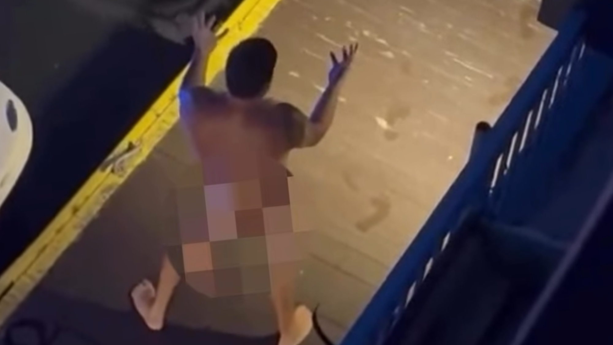 According to a video posted by the popular blog site ChicagoCritterMedia, a white male was seen launching himself off the Division Street bridge. He then swam up to private boats and started flashing and swinging himself around.