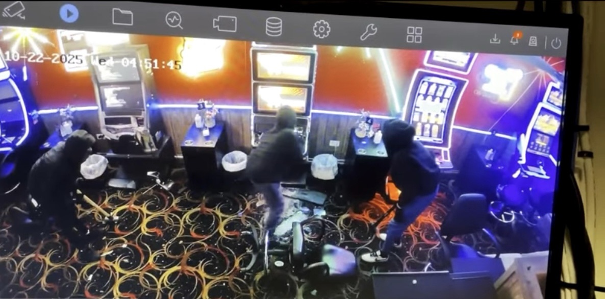 The burglary happened on Sibley Boulevard, where surveillance footage captured several suspects wearing dark clothing and ski masks. They shattered the front glass door, rushed inside, and began breaking open gaming machines to get to the cash boxes.