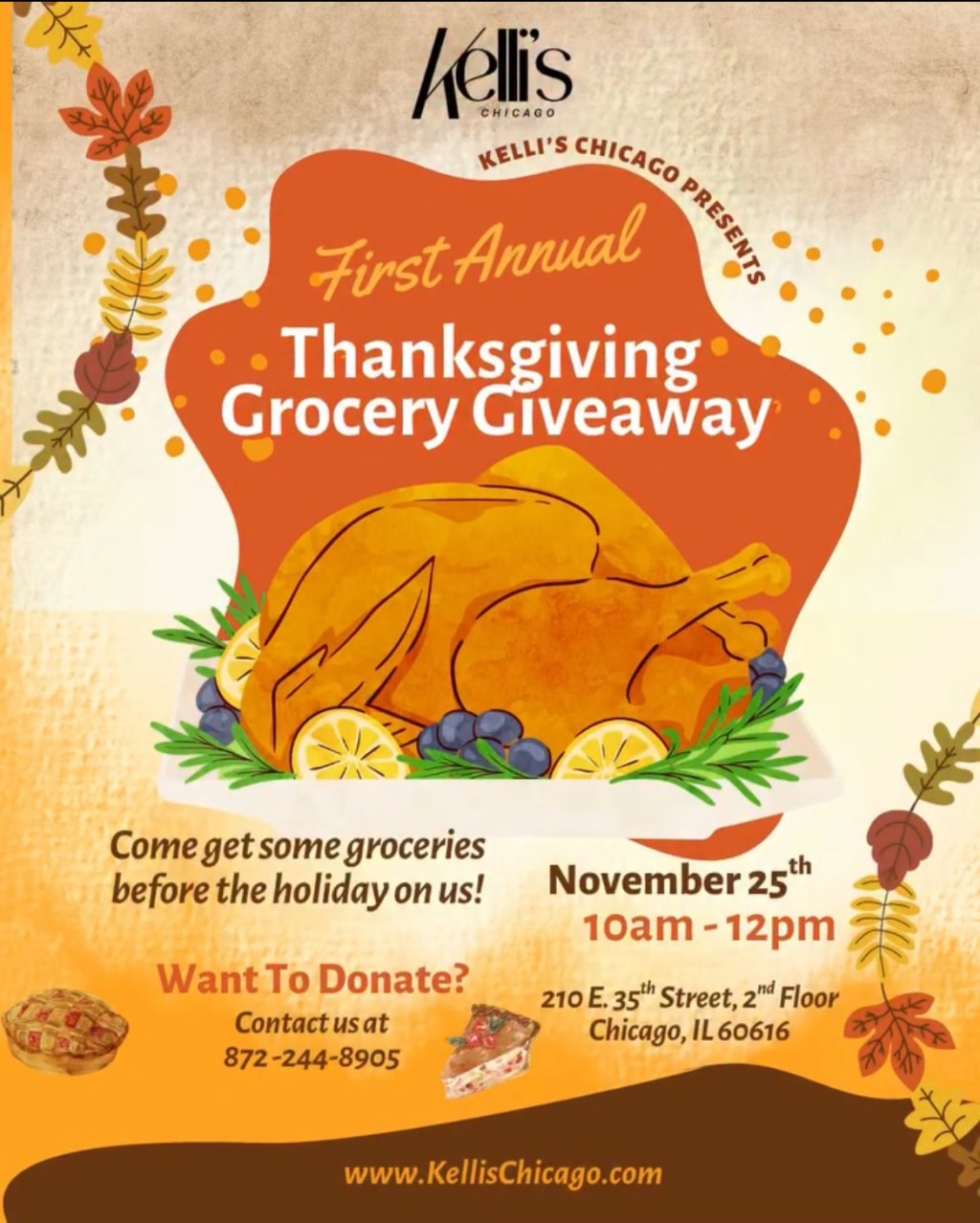 Kelli’s Chicago is also accepting donations from anyone who wants to contribute to feeding local families this season.