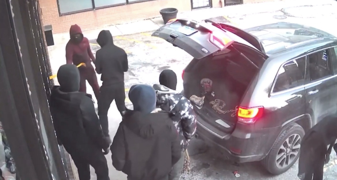 Chicago police have released surveillance video capturing a bold overnight theft in which thieves stole an ATM from New York Food Mart on Saturday on the city’s North Side, according to ABC News.