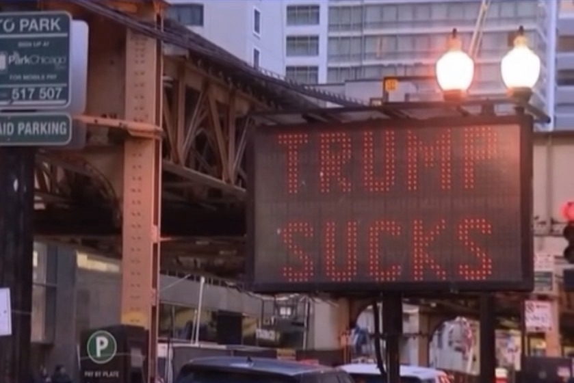 An electronic traffic sign operated by the Chicago Department of Transportation in the Loop was reportedly hacked, displaying an unauthorized and explicit political message instead of standard roadway alerts, according to CBS News.