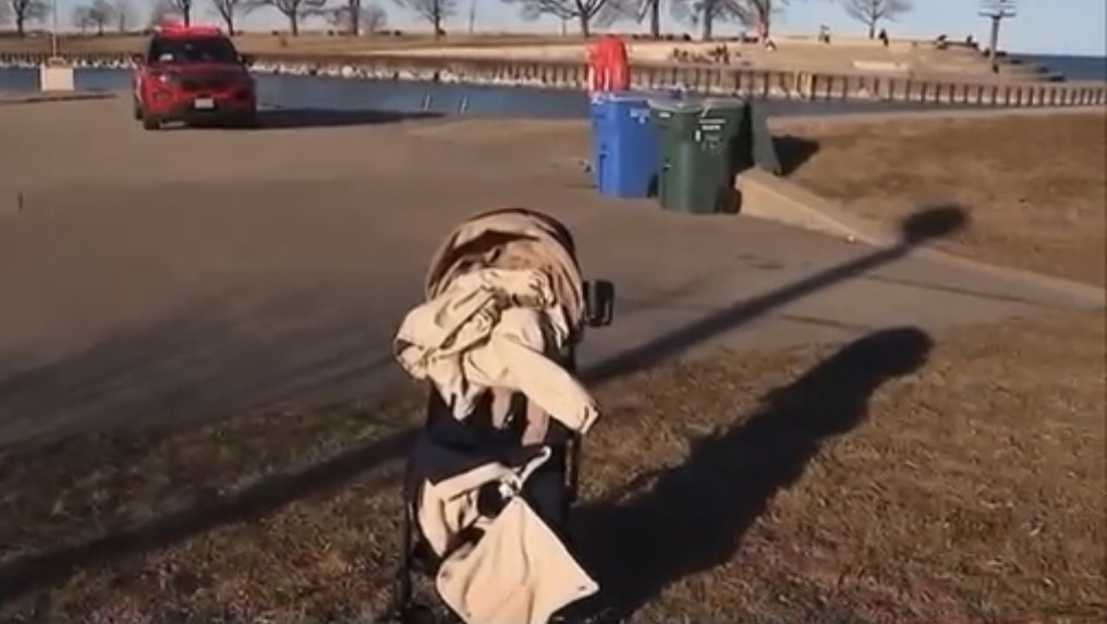 Witnesses say powerful gusts along the lakefront suddenly picked up, sending the unattended stroller rolling toward the shoreline before it tumbled into the choppy water. The incident reportedly happened during a particularly windy stretch, as waves crashed against the edge of the lake.