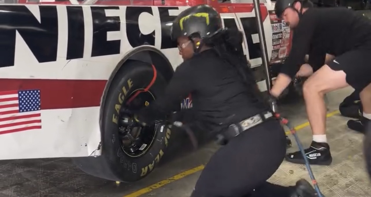 History was made in 2017 when Brehanna Daniels stepped “over the wall” and into the fast-paced world of NASCAR pit crews — becoming the first Black woman tire changer in a national NASCAR series.