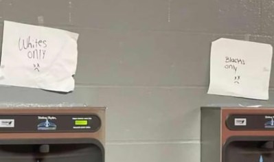 Signs appeared on the water fountains at Colerain High School in Cincinnati recently appearing to segregate the water fountains along...