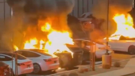 A person dressed in black shot and set fire to several Tesla vehicles at a repair facility in Las Vegas...