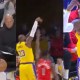 LEBRON JAMES GIVES DERRICK ROSE HIS FLOWERS